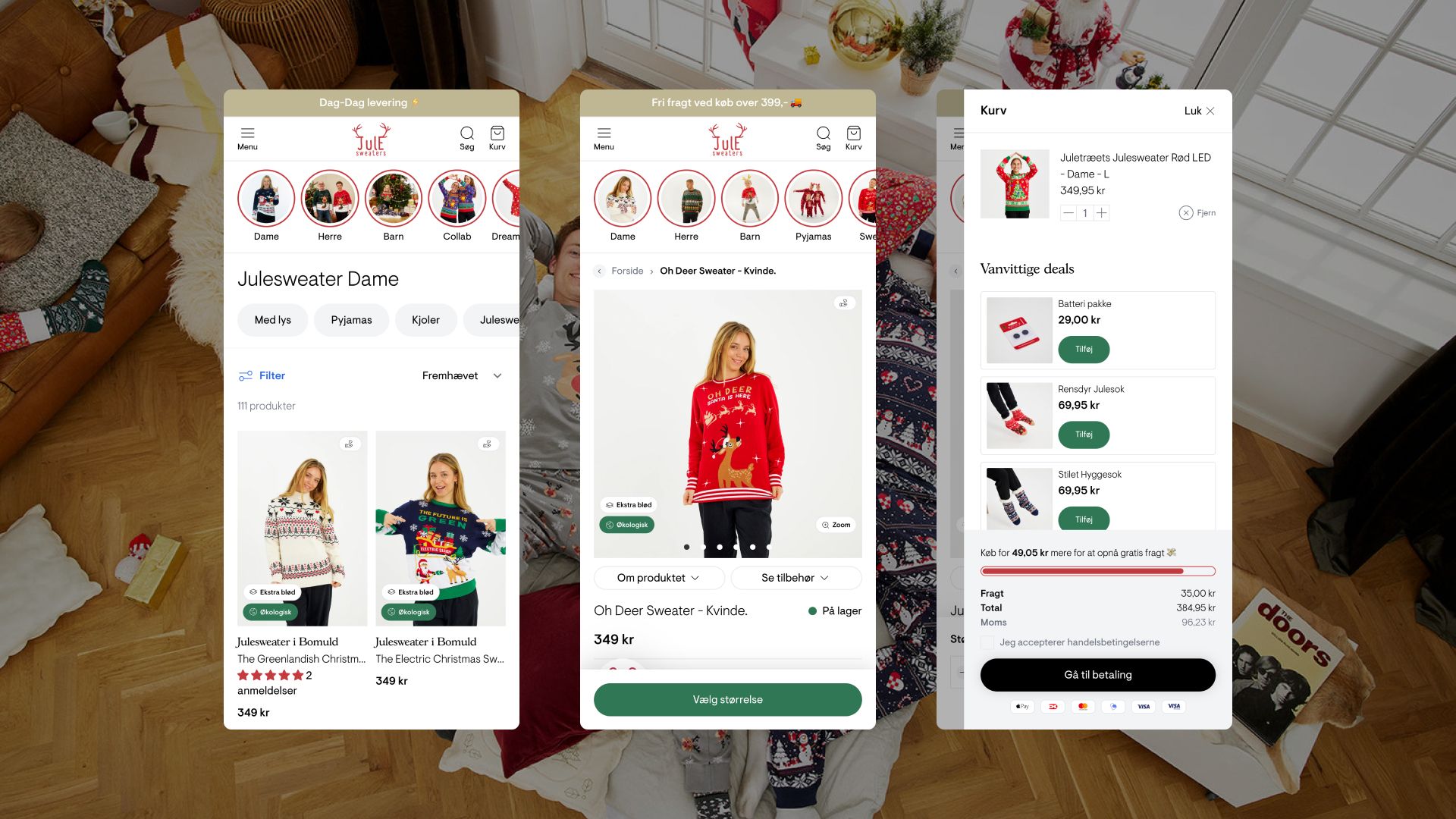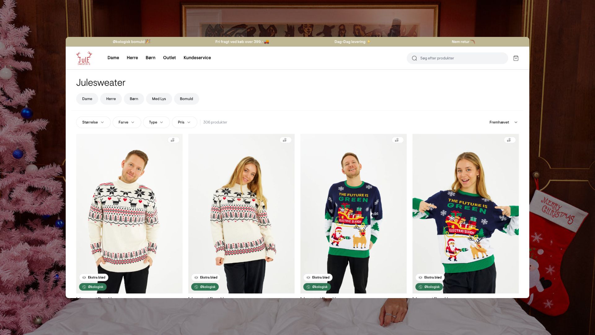 “We started making Christmas sweaters just for the fun of it. In the beginning, we sold at Christmas markets, and then we decided to focus on selling online. We started with a different webshop system and when we switched to Shopify in 2018, I set up the website myself. I chose a random template and we worked from there.”